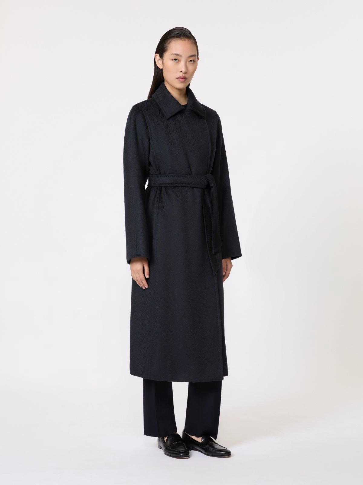MAX MARAのアイコン素材、ピュアキャメルのベルト付きラップコート。