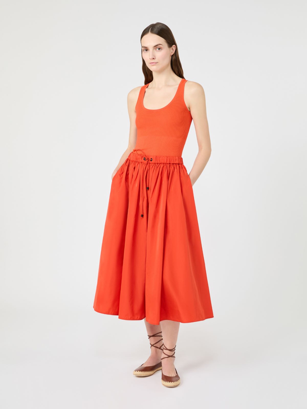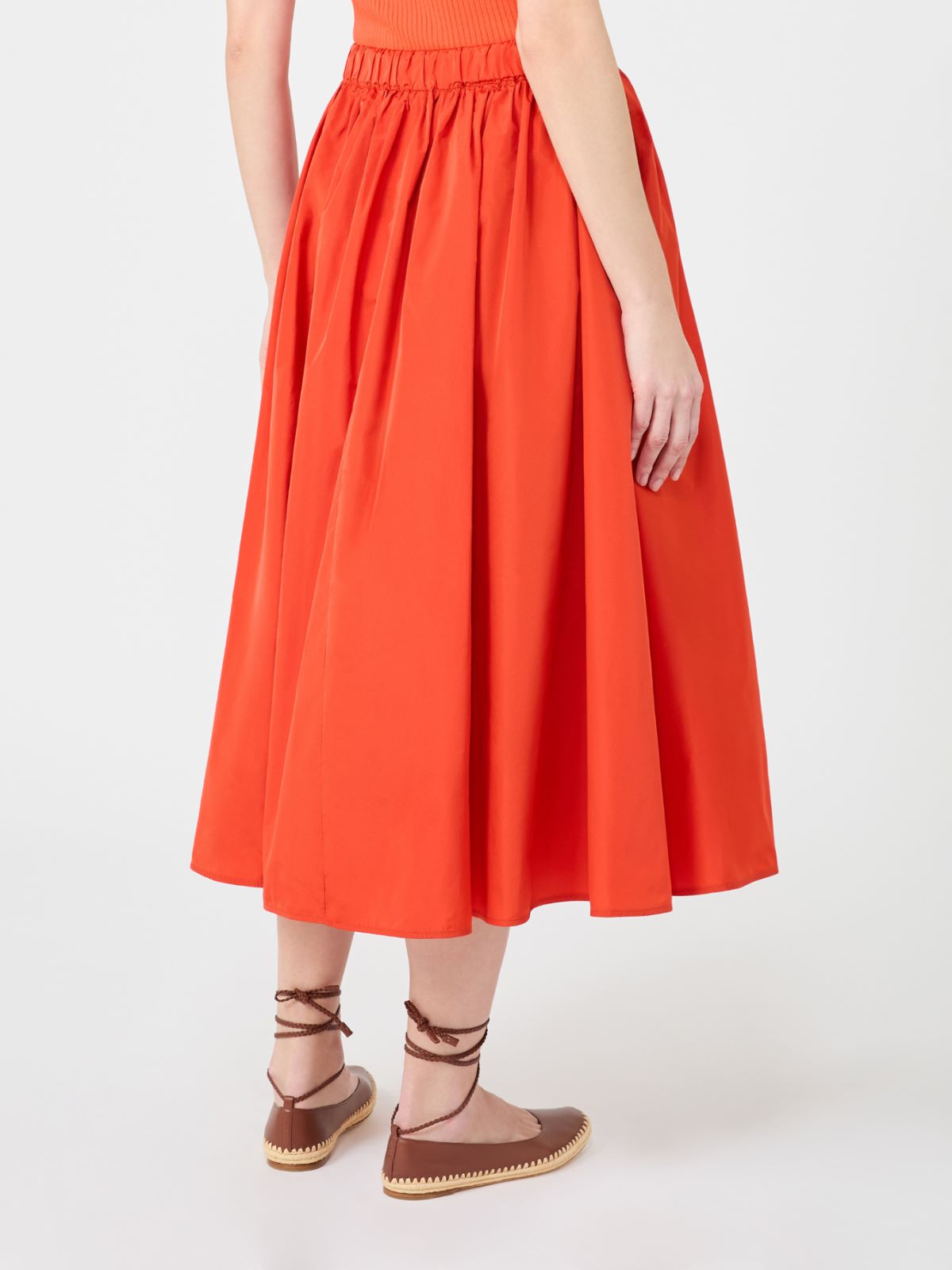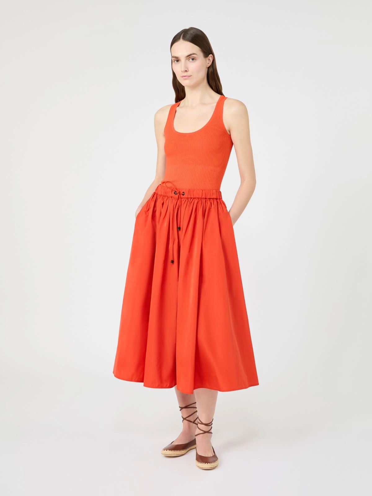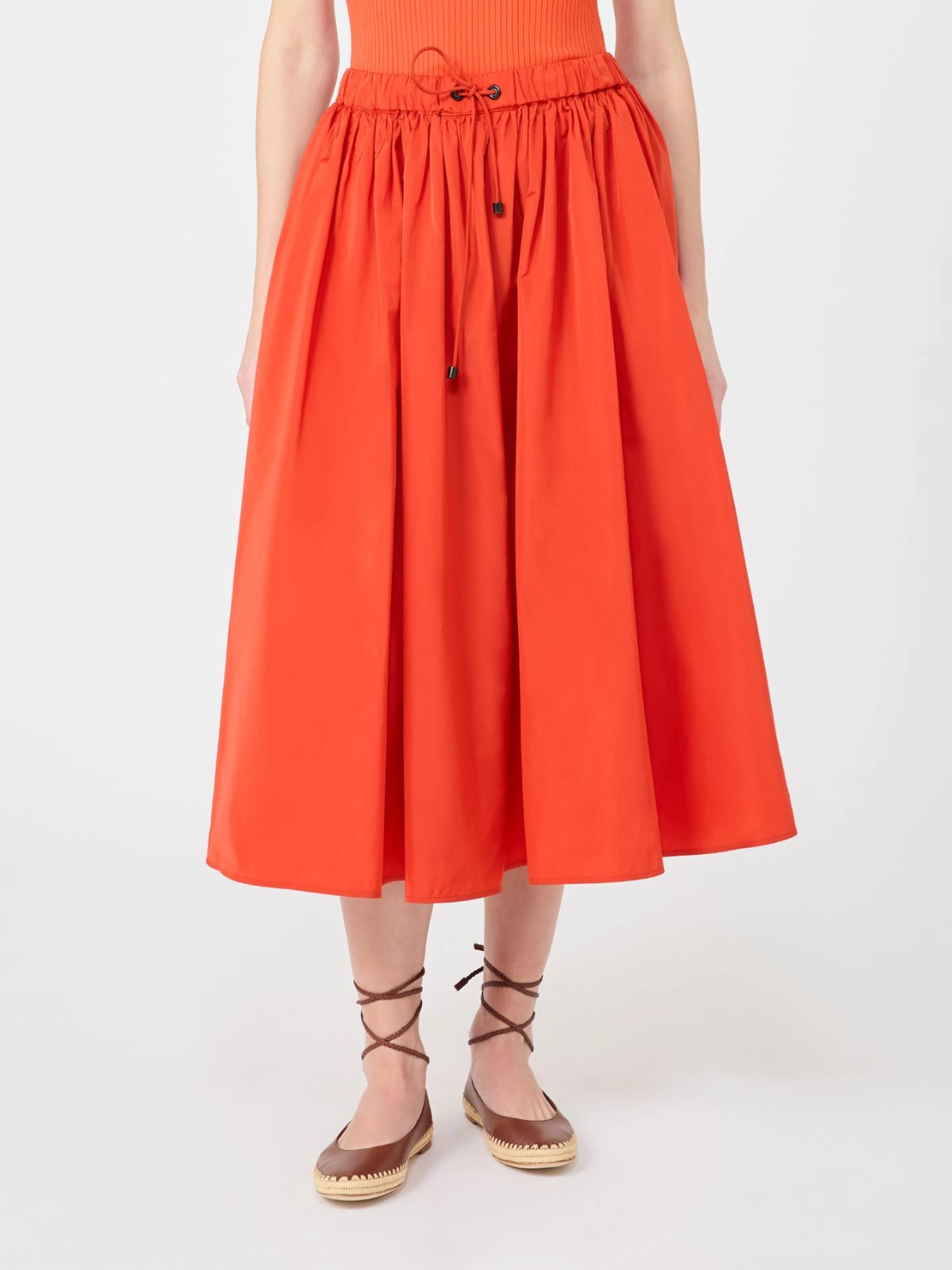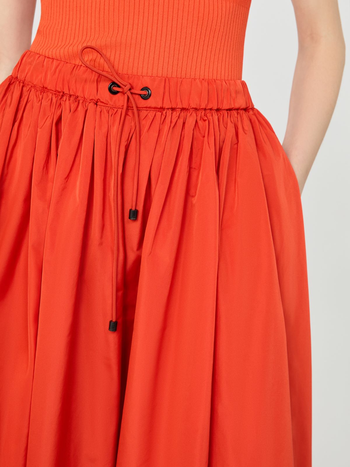 ウエストのドローストリングディテールが特徴的なシルクスカート。