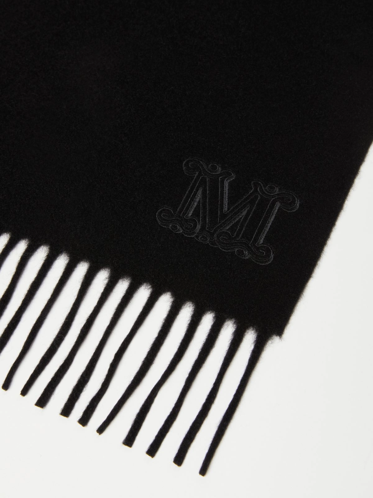 “MaxMaraGram”のMロゴ刺繍をあしらったピュアカシミヤストール。
