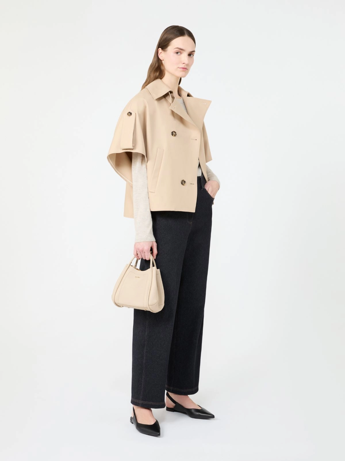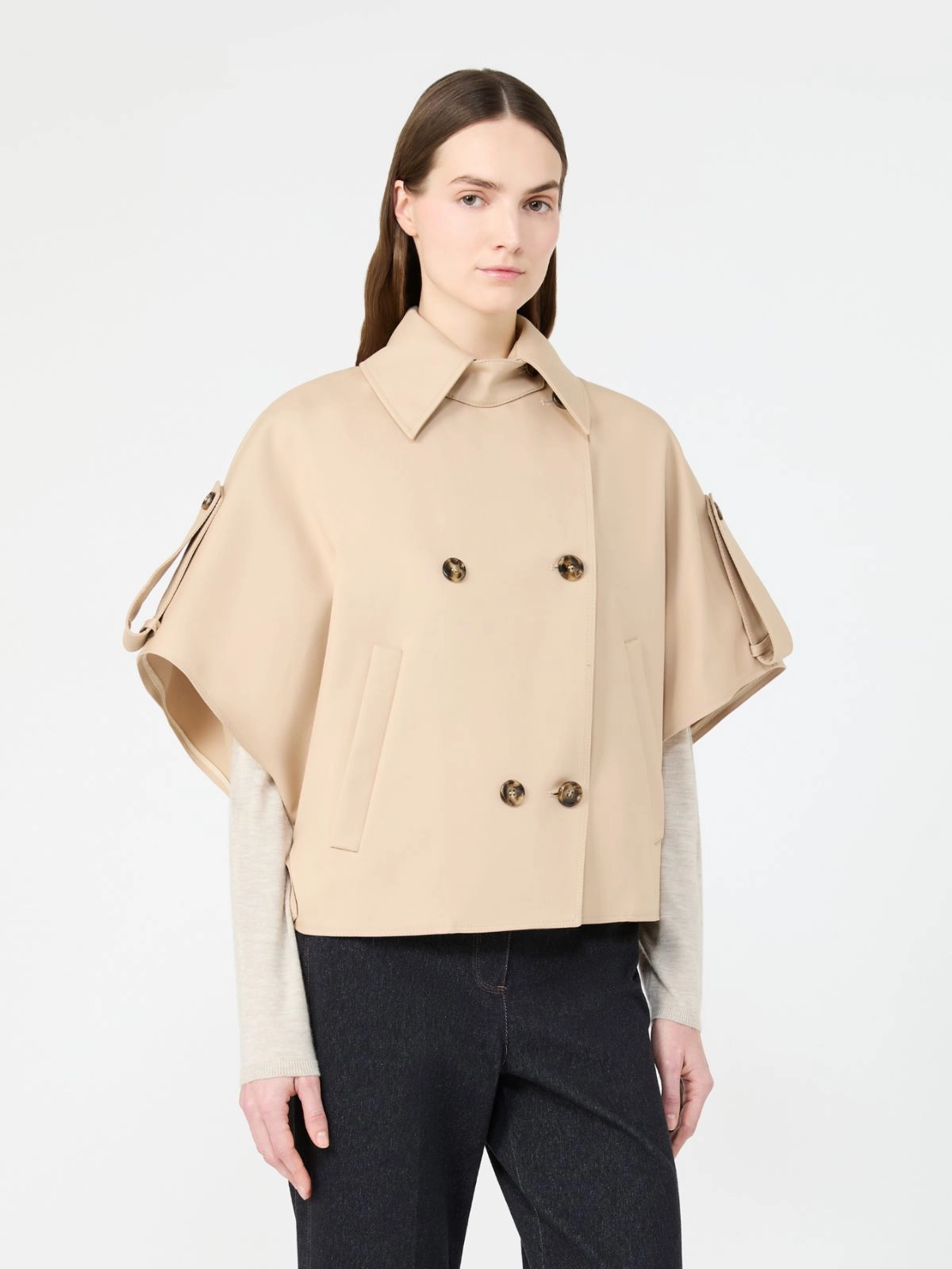 トレンチコート風のディテールがあしらわれたピュアコットンケープ。