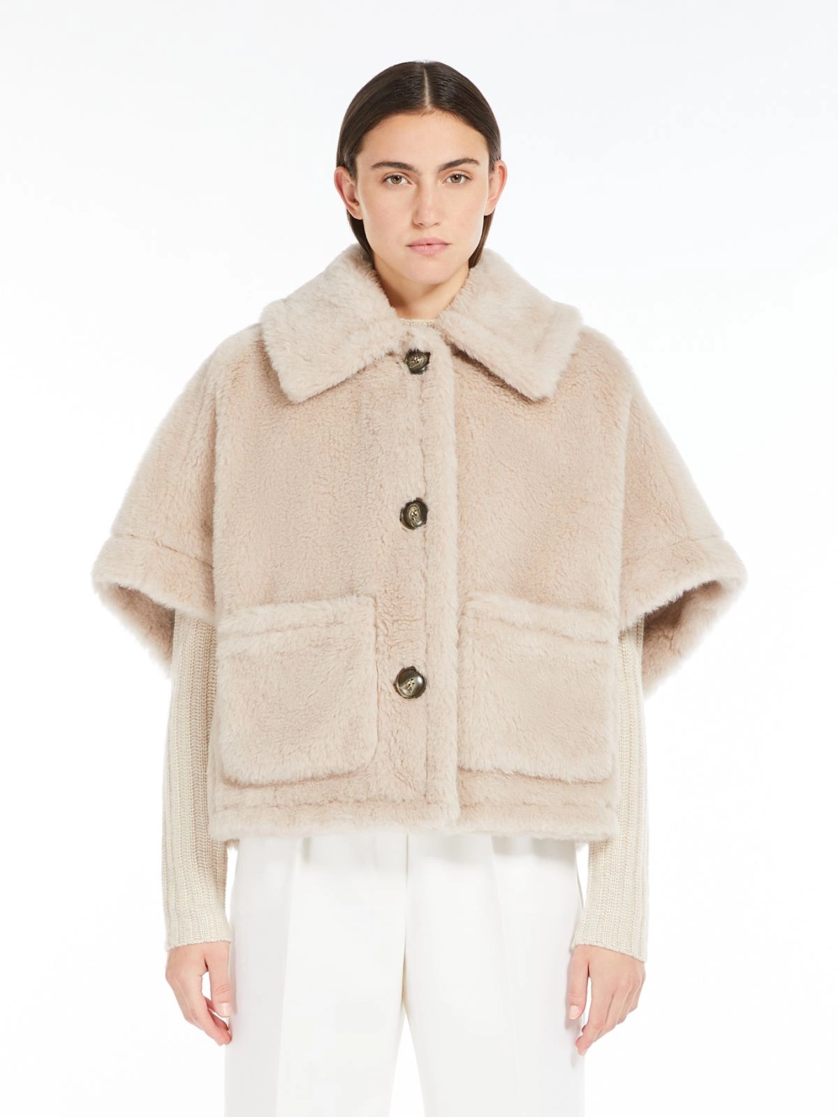 MAX MARAのアイコン、キャメル素材のテディベアボクシーケープ。