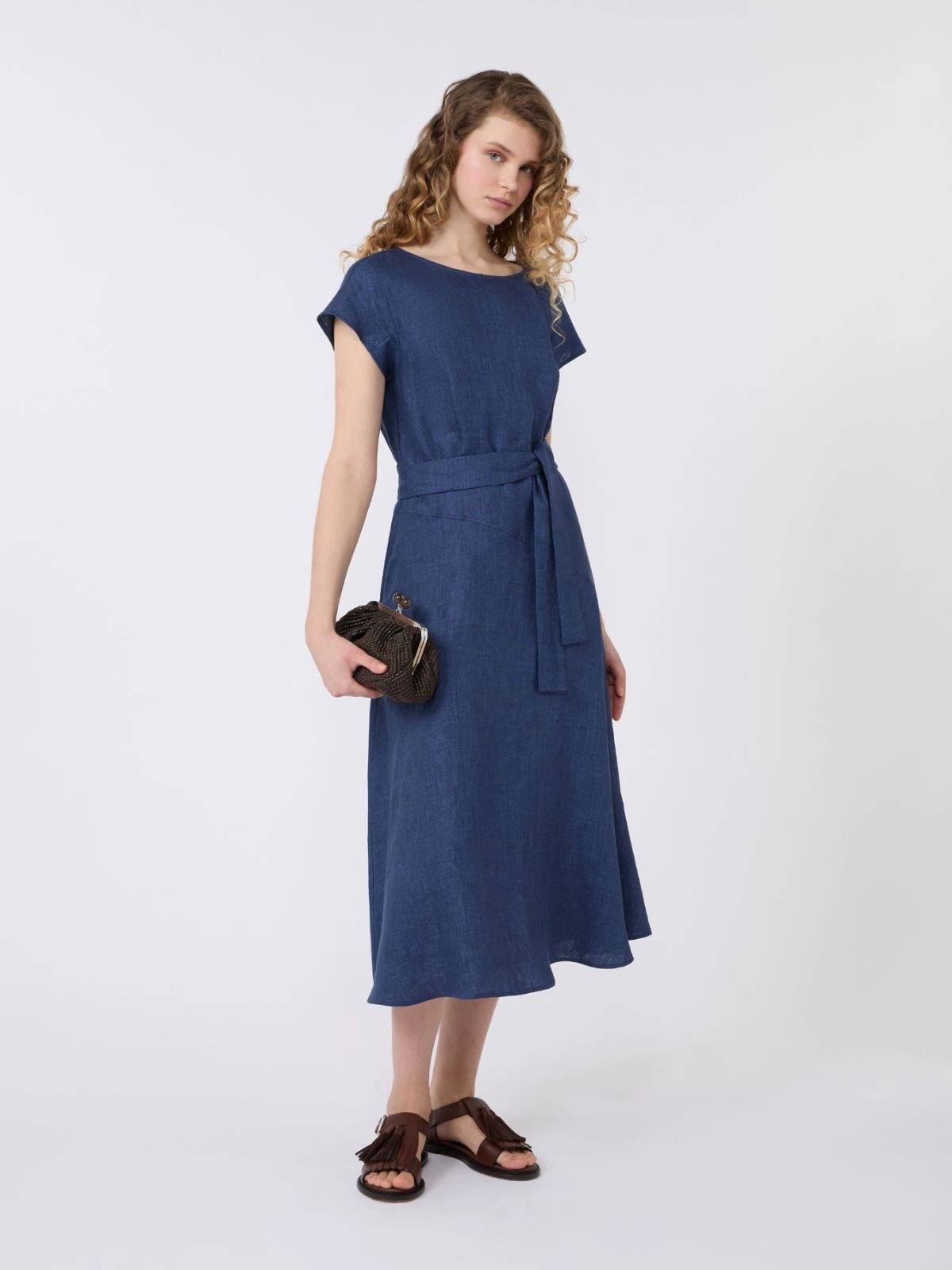 [エゾルディオ] リネン キャンバス ミディ ドレス - Navy