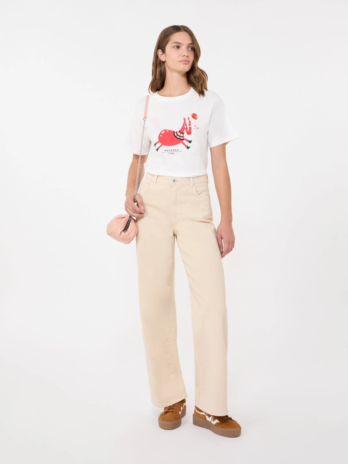 フロントにプリントをあしらったピュアコットンジャージーTシャツ。