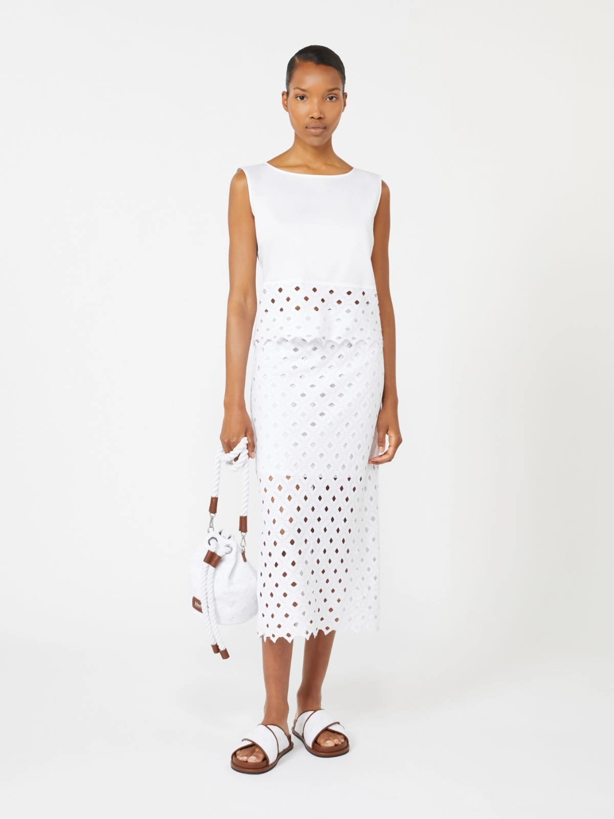 [ゾッロ] マクラメレース ペンシル スカート - Optical white