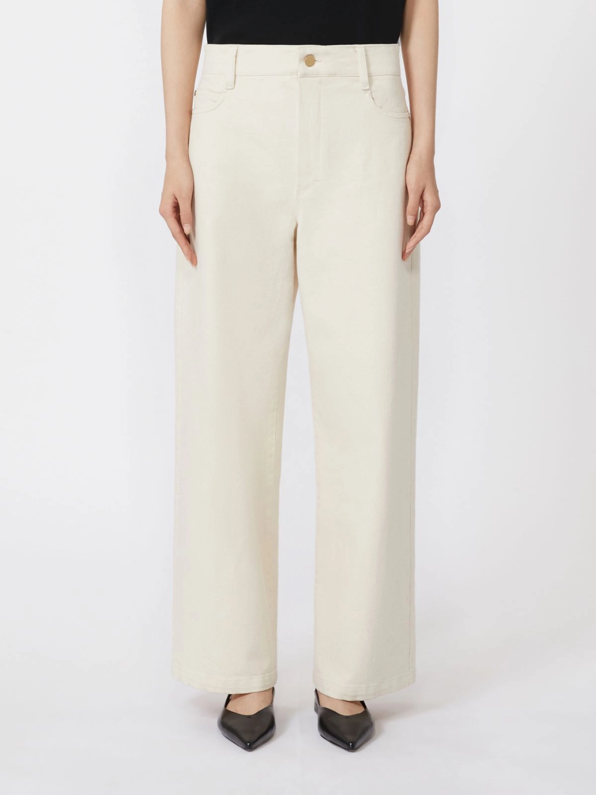 シルエットは、ワイドレッグの5ポケットデザイン。
