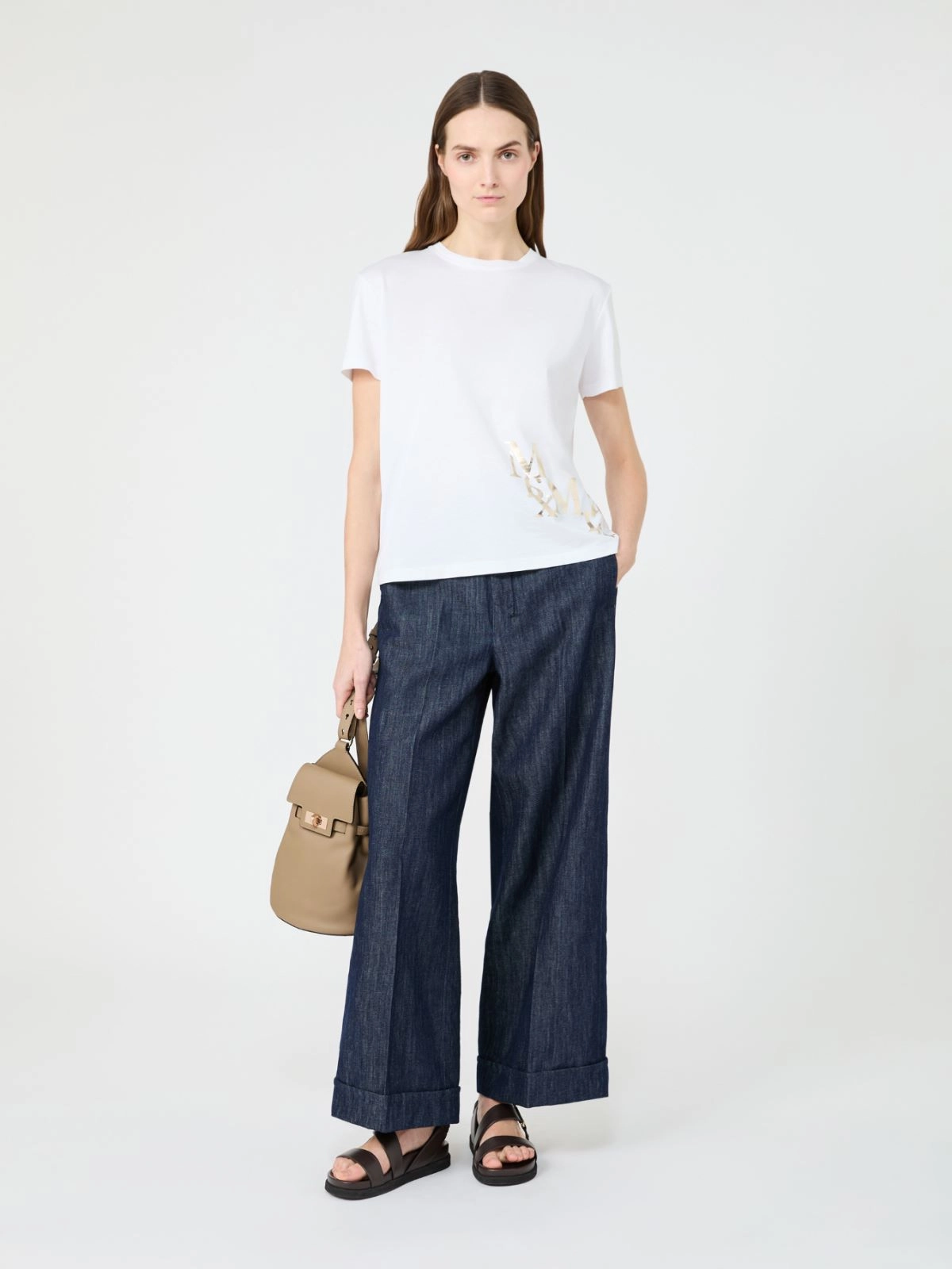 [エディーレ] ピュア コットン ジャージー プリント Tシャツ - White
